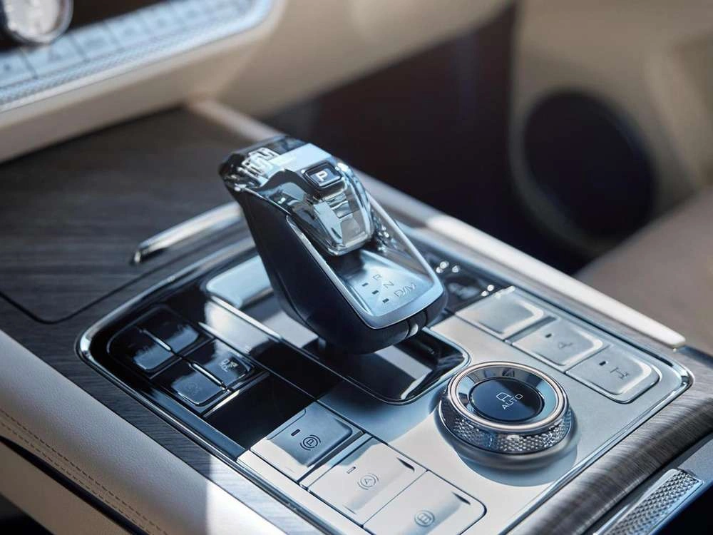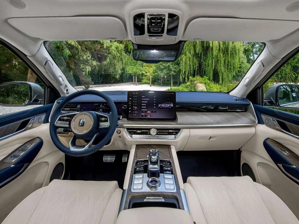 - Центральный подлокотник сидений заднего ряда с подстаканниками, отсеком для хранения и сенсорным экраном управления функциями автомобиля